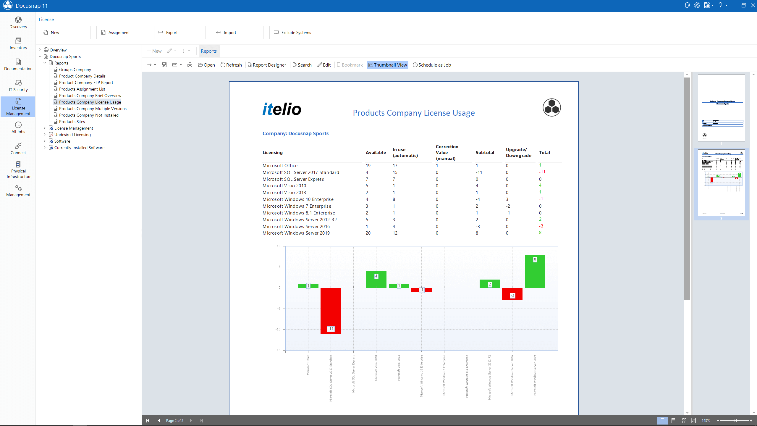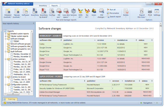 La libreria software integrata classifica ordinatamente i programmi rilevati in base al tipo, assegnando automaticamente categorie e icone delle applicazioni per un rapido riconoscimento. Sono disponibili vari report sul software installato, sia standard che configurabili in modo flessibile.