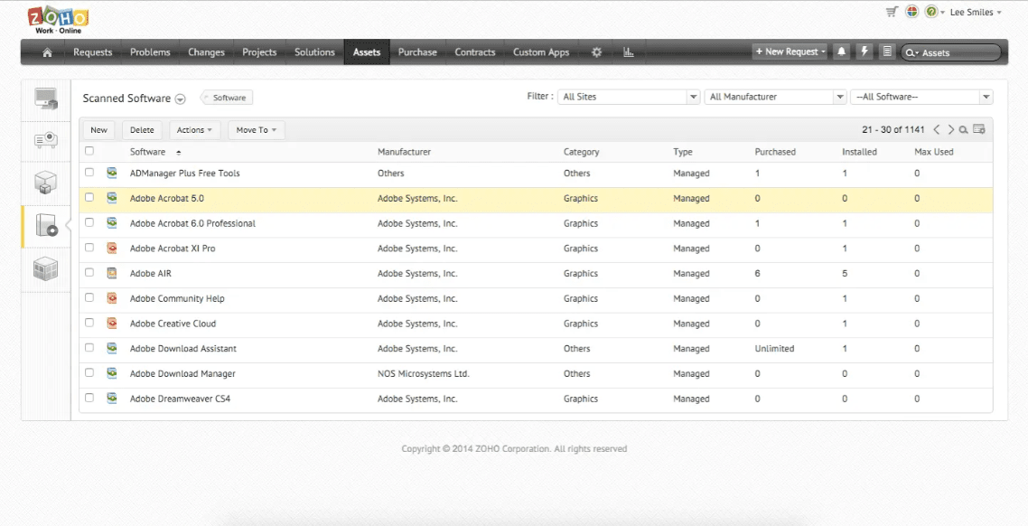 È possibile configurare le licenze software in base a termini distinti come conteggi dei dispositivi, abbonamenti, versioni OEM, ecc. Gestisce anche bundle di licenze e pool di licenze dai principali editori come Microsoft e Microsoft Office. Gli strumenti analitici offrono visibilità azionabile mentre i set di strumenti come le app confezionate semplificano l'amministrazione SAM su larga scala.
