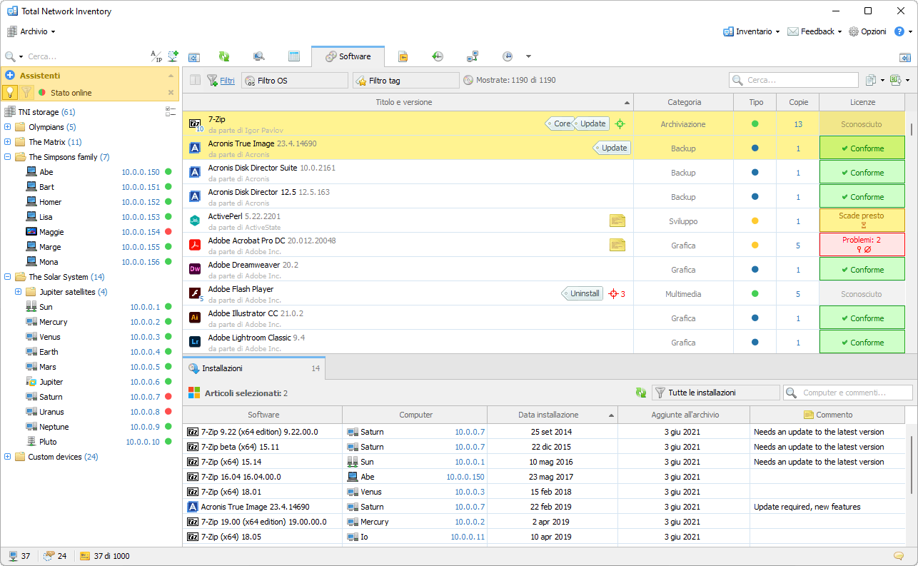 Total Network Inventory 6 Professional rappresenta lo standard d'oro per la gestione delle risorse di sistema aziendali e l'ottimizzazione delle licenze. Utilizza agenti di scansione automatizzati per scoprire e profilare tutte le risorse hardware e software su Windows, macOS e Linux.